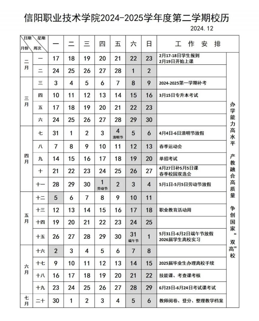 关于2025年信阳职业技术学院的寒假安排及放假时间,由于我无法获取实时更新的具体信息,以下内容将提供一个一般性的寒假安排模板,您可以根据实际情况或向学校官方渠道查询具体信息。