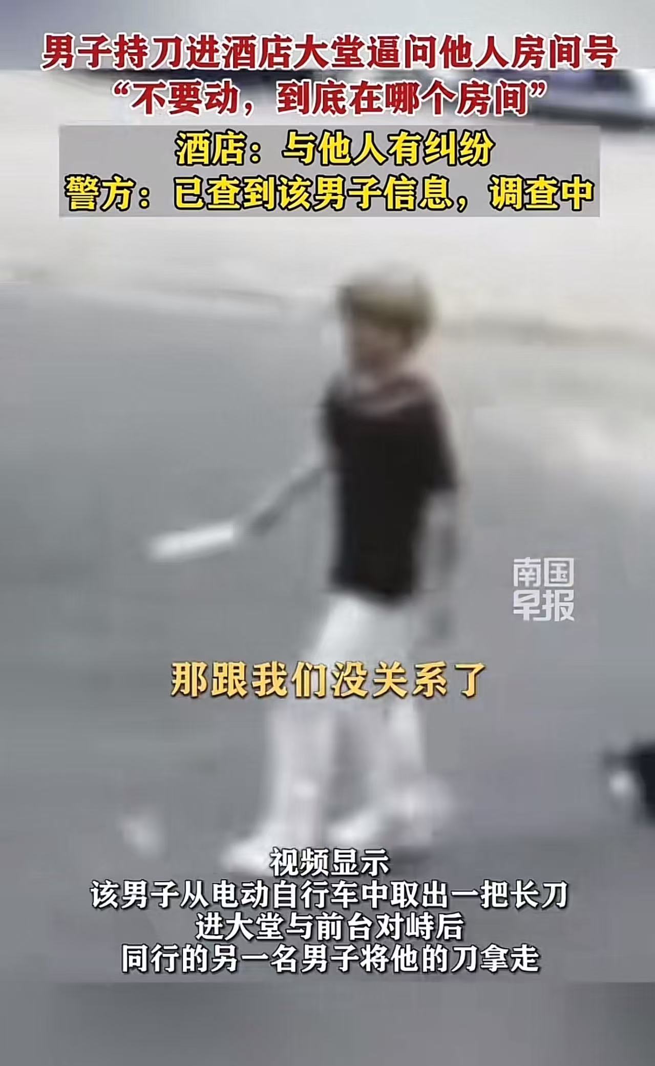 随后,他从电瓶车的储物空间里抽出一把长长的砍刀,气势汹汹地冲进了酒店大厅。