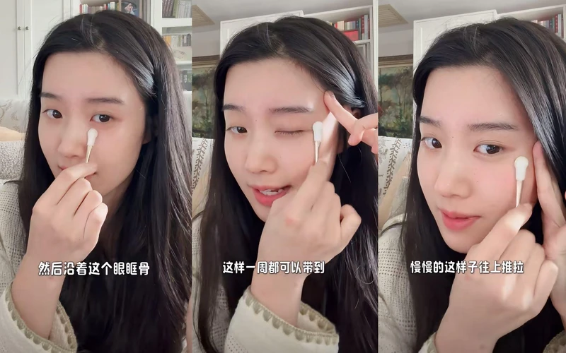 卢昱晓说自己常有眼下细纹、黑眼圈的困扰,所以平常擦眼霜的时候都会搭配按摩手法,这套小技巧能让眼下肌肤更明亮有神!